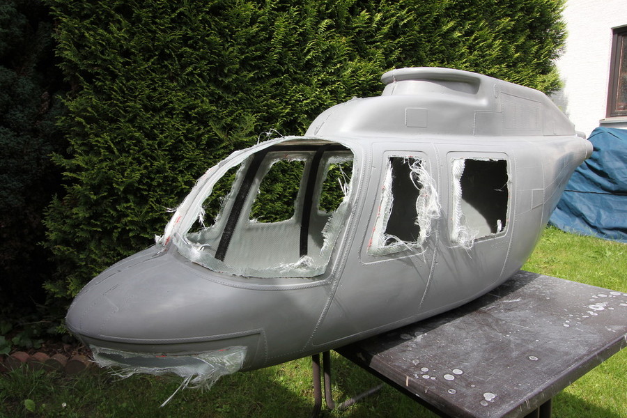 Nach unsererm Pfingsturlaub ging es auch schon los. Innerhalb einer Woche laminierten wir zwei Rümpfe, die wir nun Parallel aufbauen. Somit möchte ich Euch hier unsere Vorgehensweisen beim Bau der beiden Jet-Ranger dokumentieren.