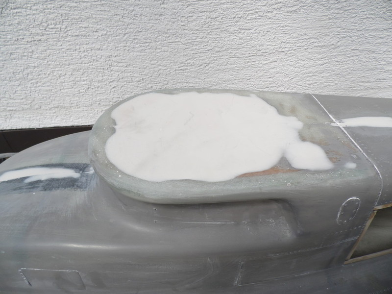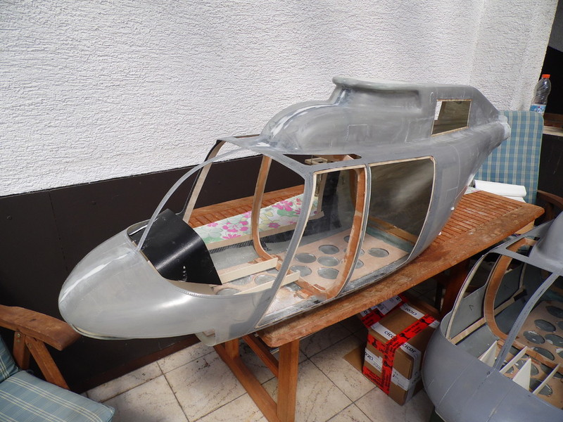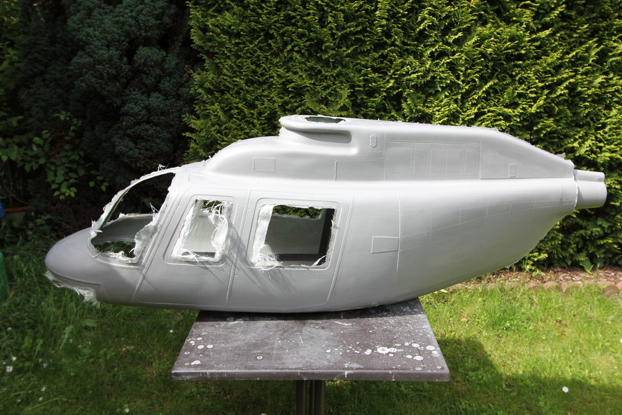 Als die Rümpfe aus der Form kamen, mussten sie an der Trennnaht sowie an den Fensterrahmen "verputzt" werden. Hierbei wurden die Fenster mit der Diamant-Trennscheibe ausgeschnitten, und anschließend mit einer Feile und Schleifpapier verschliffen.