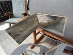 Als diese grob ihre Form hatten wurde diese anhand eines Bandschleifers am Modell nochmals genau angepasst, und mit Harz verklebt.