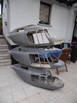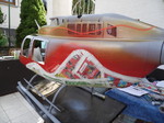 Nachdem die Rohbau Arbeiten erledigt waren, und die Details angebracht waren, konnte die Lackierung beginnen. Anfangs wurden alle GFK Teile mit Silikonentferner sorgfältig gereinigt, und somit entfettet.