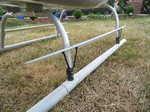 Hierzu wurde Rohr mit 20mm und mit 30mm gekauft. Auf einer Biegervorrichtung wurden diese dann geboden. Da das untere Kufenrohr sehr dick ist, und wir besseren Möglichkeiten haben, ist das Rohr beim biegen geplatzt. Der Bogen wurde nicht richtig rund, und dann sah es auch noch schlecht aus. Auf Grund dessen haben wir uns für PVC Rohr entschieden. Das ist leichter, und es gibt passende Rohrbögen. Diese wurden mit dem Rohr verklebt, abgeschrägt und vorne zugespachtelt. Nun sehen die Kufen Super aus, und ist dazu auch noch leichter.