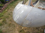 Da die Mechanik am Dom verschraubt wird, wurde das Brett in den Dom eingeklebt. Dort wird die Mechanik dann zusätzlich noch durch vier Schrauben verstärkt. Ursprünglich war hier ein großes Loch im Rumpf. Dieses wurde nach dem verkleben des Holzes mit Spachtel verspachtelt und verschliffen. Anschließend wird ein 20mm Loch mittig gebohrt und die fertige Mechanik mit Rotorwelle durchgeschoben. Anhand dieser Bohrung ist die Mechanik auch Mittig im Rumpf, und lässt sich optimal einpassen.